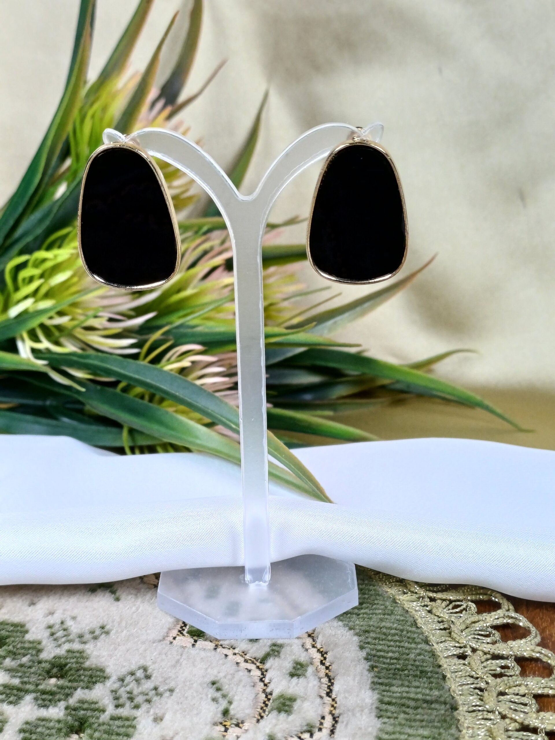 This pair is a set of modern minimalist stud earrings, featuring a bold geometric silhouette and a high-contrast finish for a clean, sophisticated look.