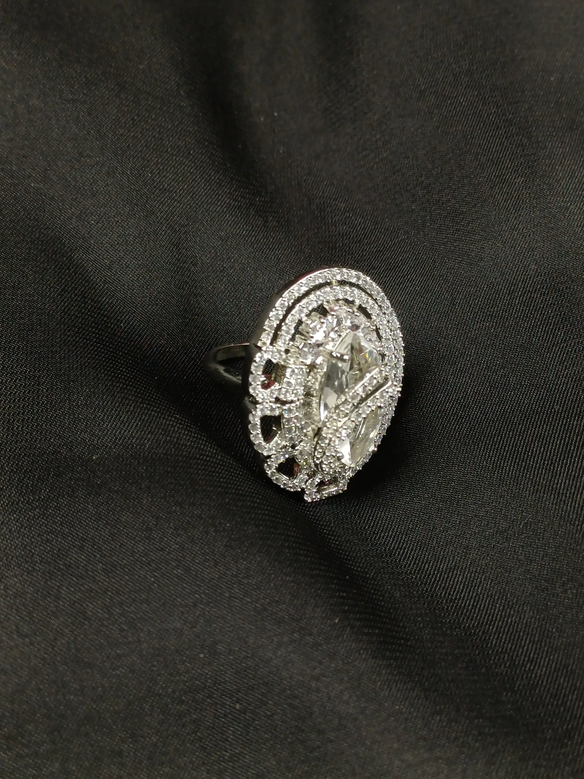 Crystal tide ring with sparkling accents for evening and festive wear.