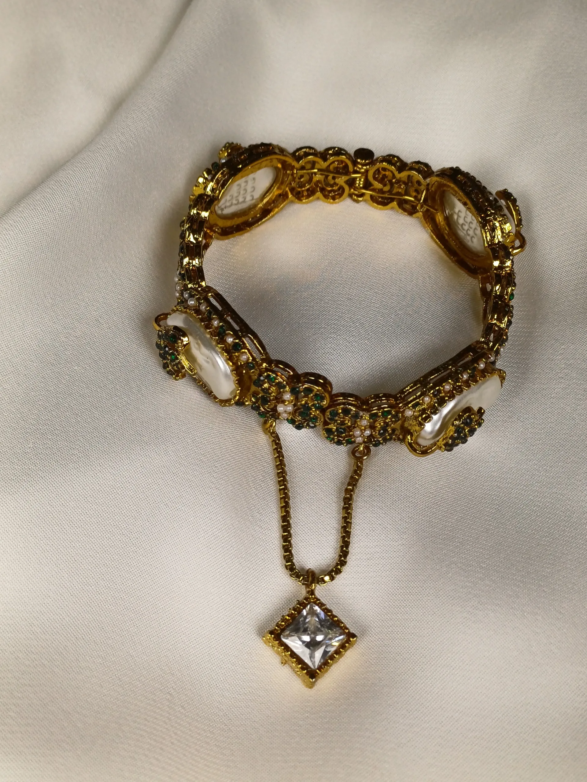 Designer-style kara with Turkish mother pearls, perfect for modern bridal looks.