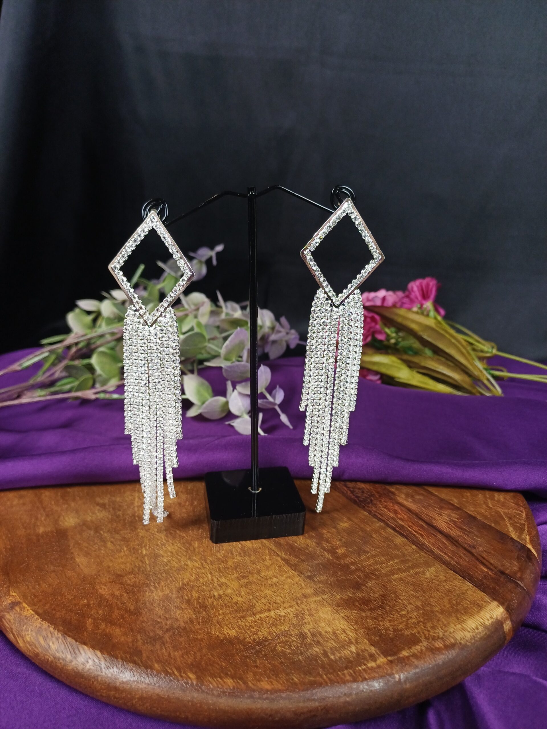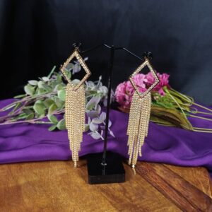 These glamorous diamond-rhombus tassel earrings feature a dramatic, elongated design that combines geometric precision with shimmering movement.