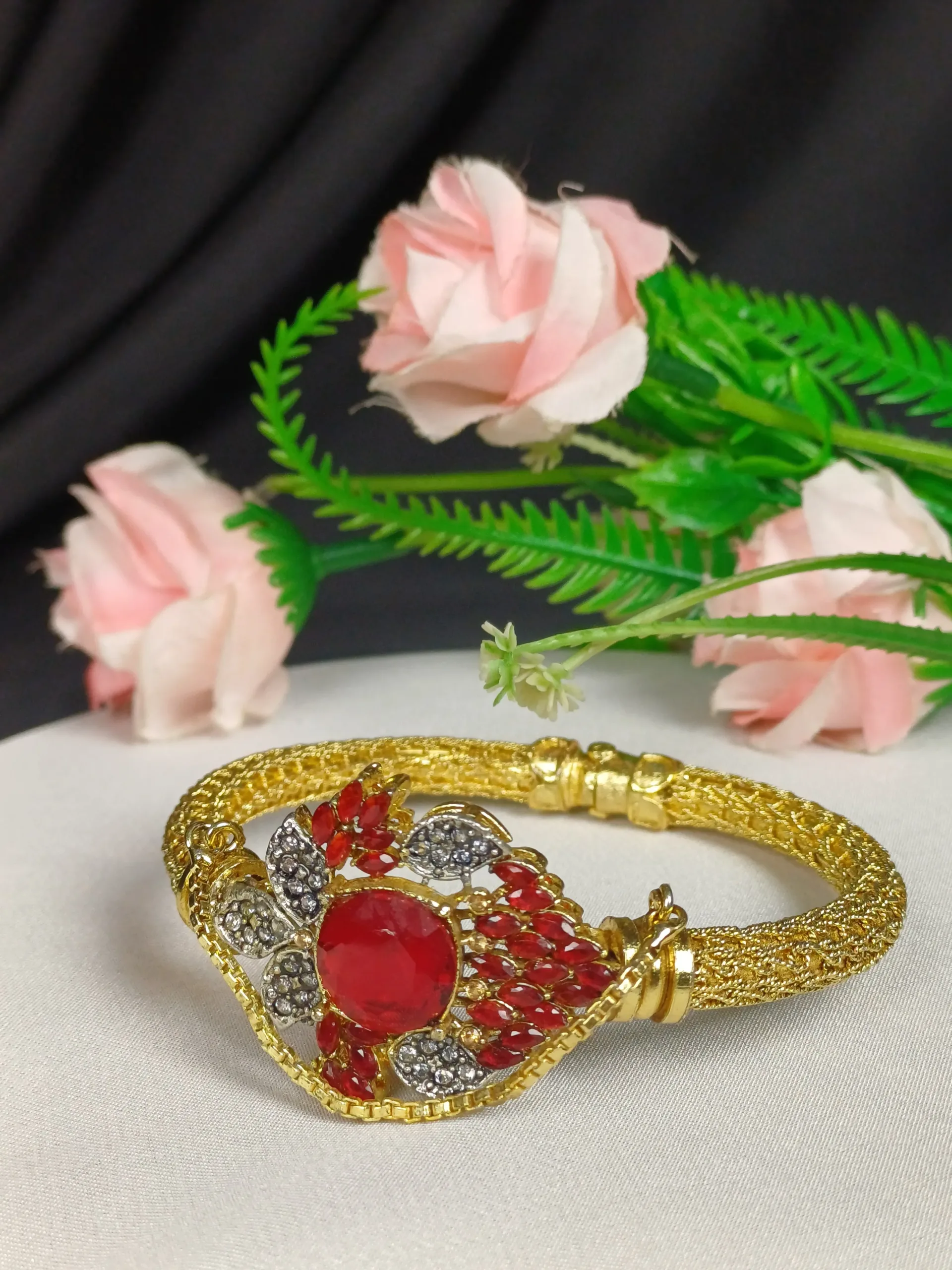 Sophisticated kara with gemstone accents, designed for upscale parties and weddings.