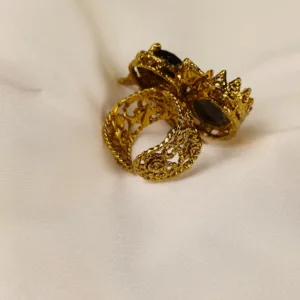 Gold-tone black stone ring with modern design for classy and casual occasions.