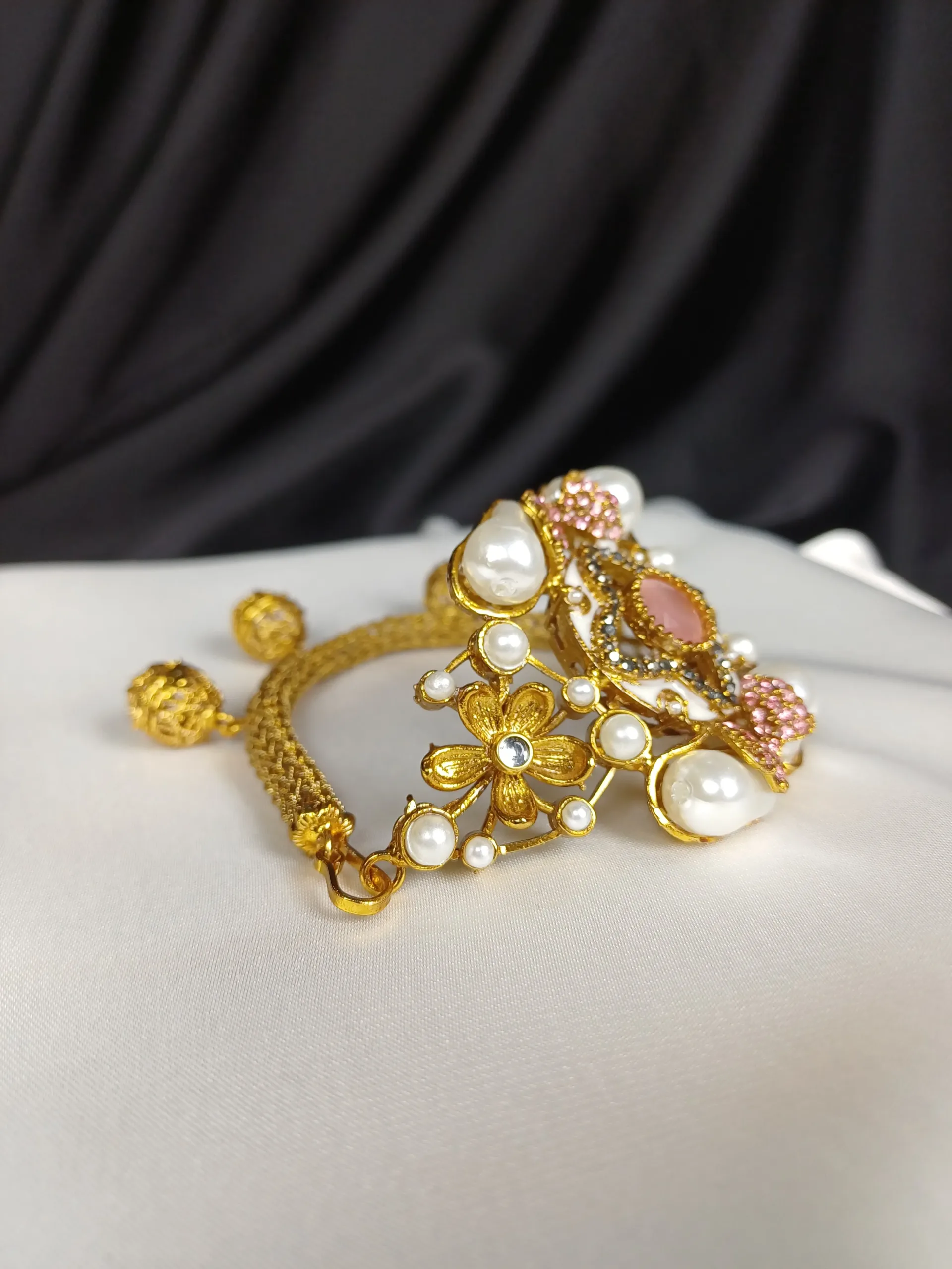 Elegant openable kara adorned with imperial mother pearls, perfect for weddings and festive occasions in Pakistan.