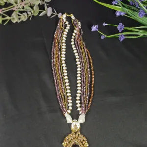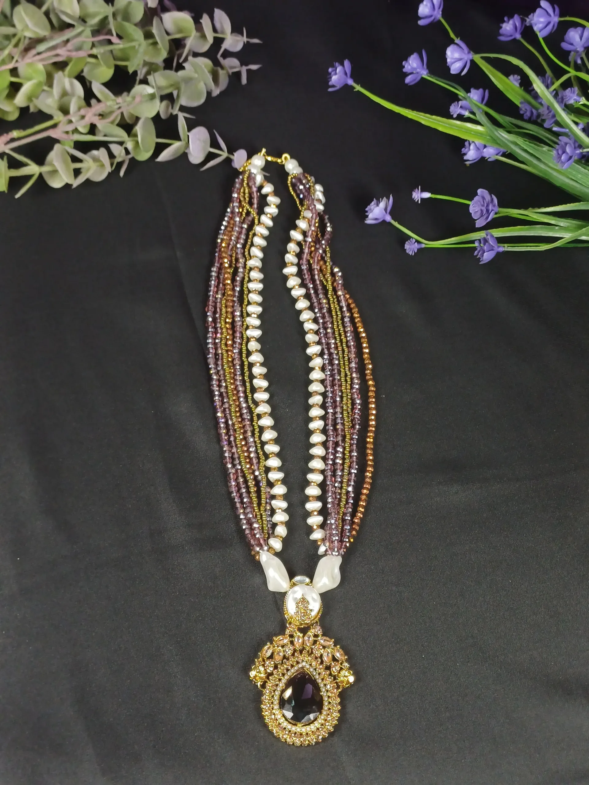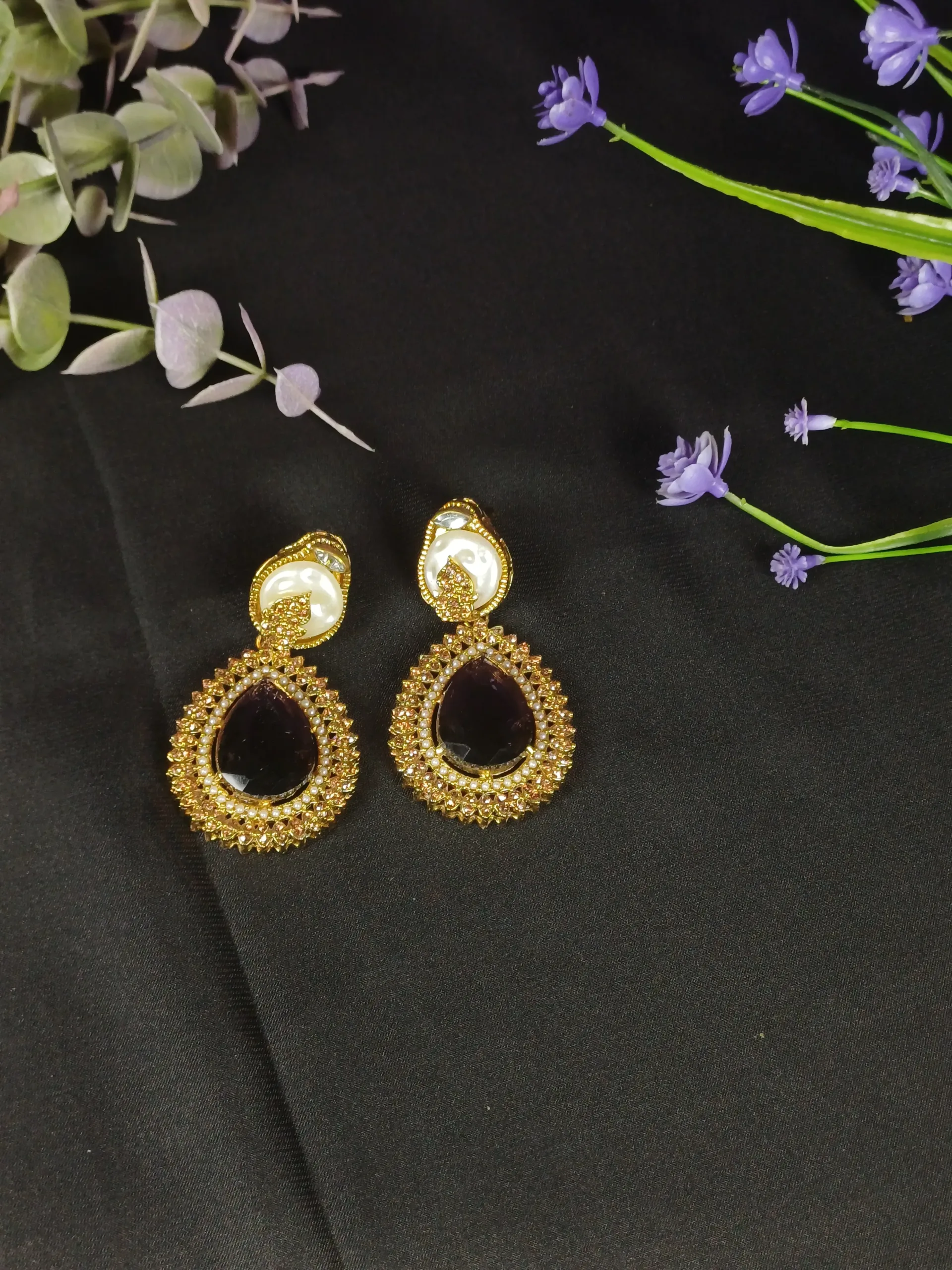 Plum & mother pearl mala with earrings with rich colors for bridal wear.