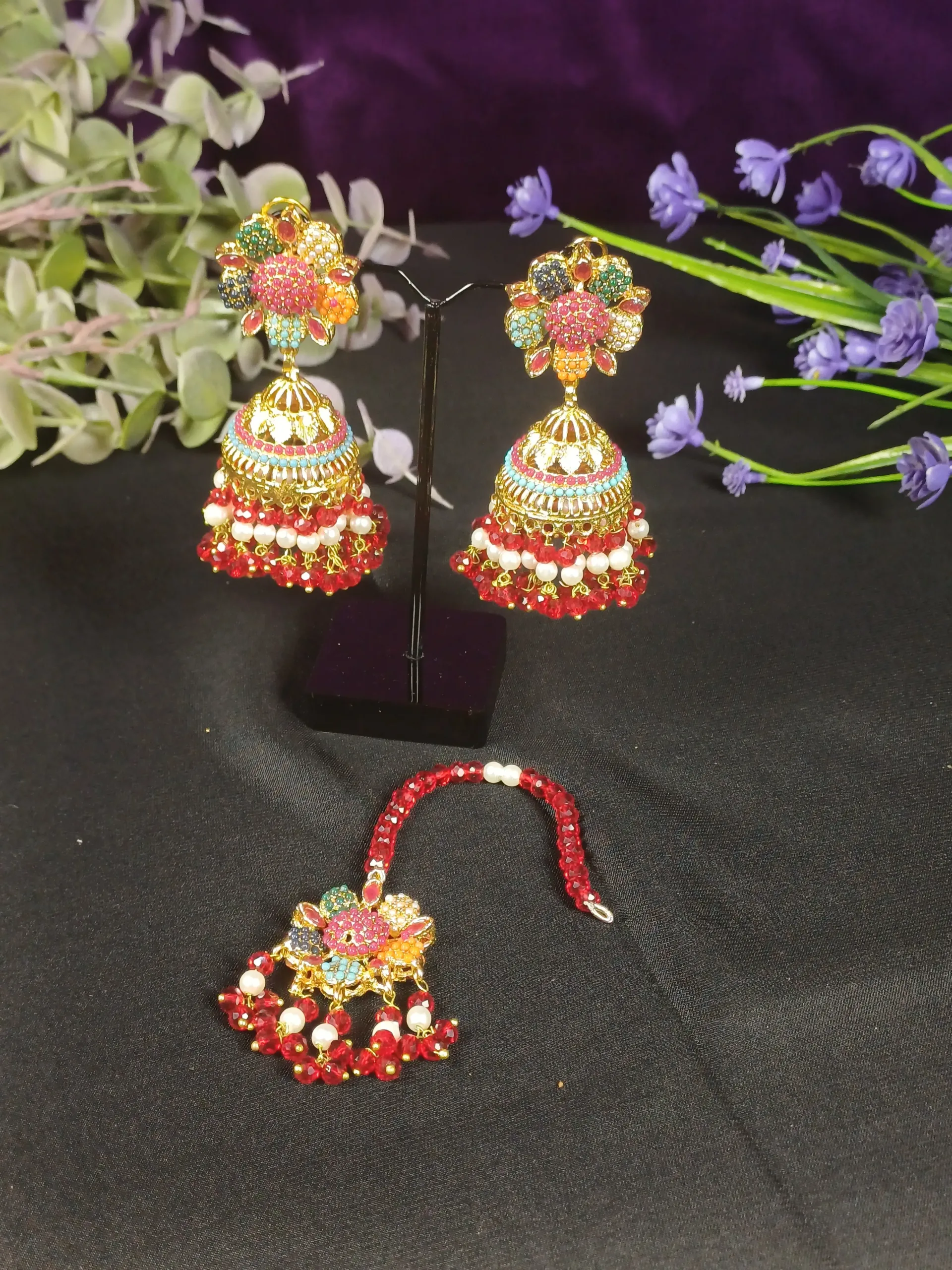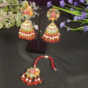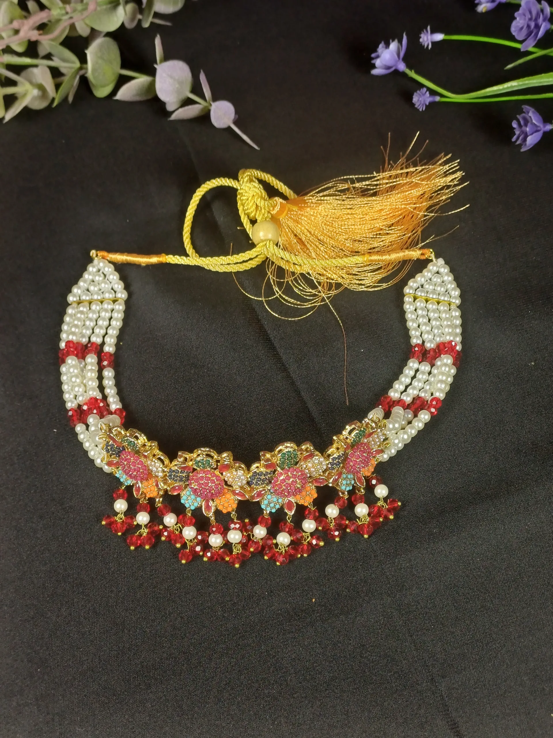 Rajwadi festive pearl choker set with earrings, perfect for weddings and parties.