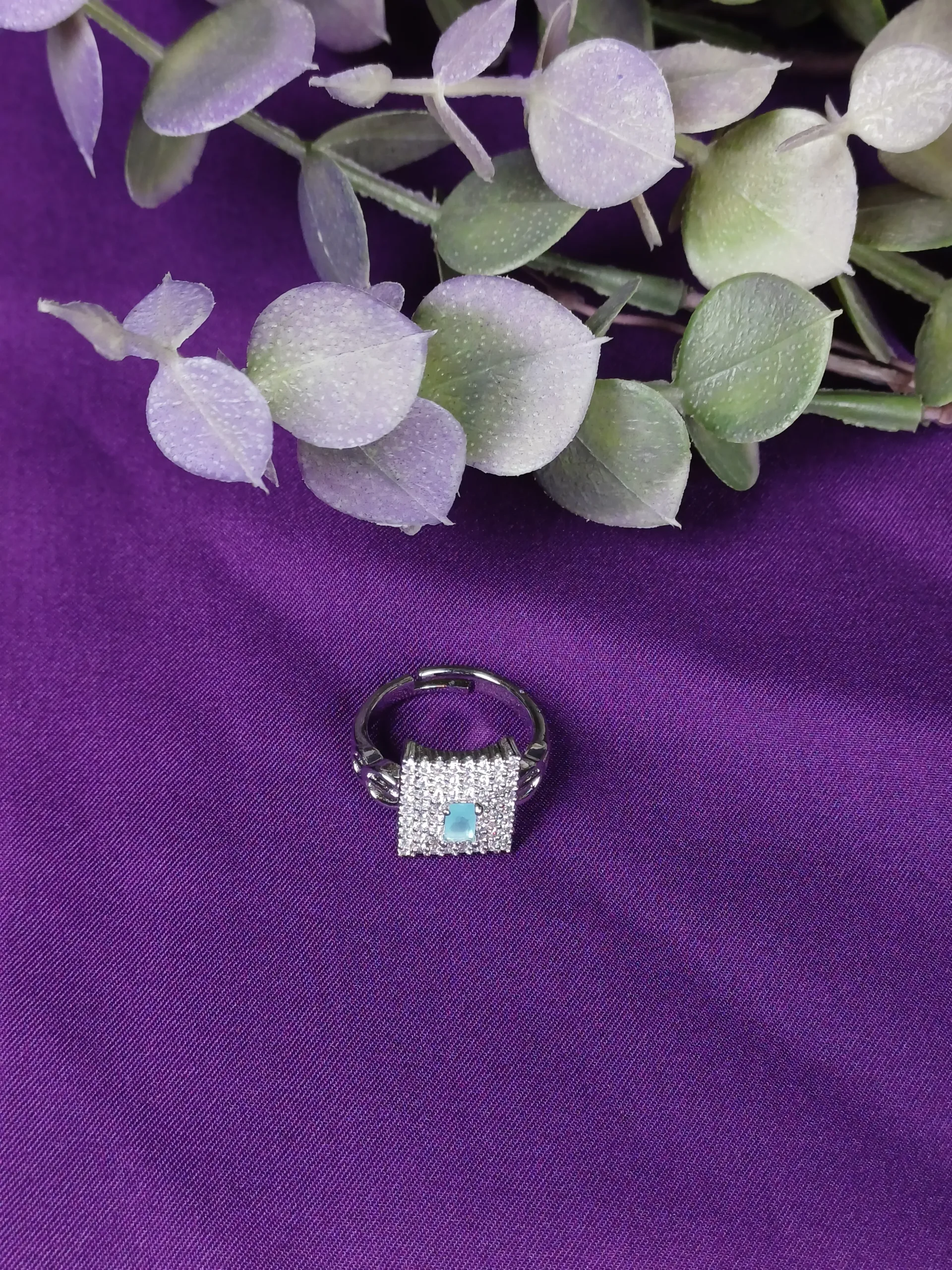 Sky blue sparkle ring with soft gemstone glow for casual and evening wear.